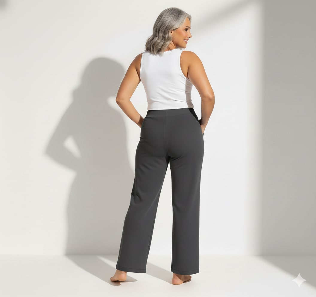 I absolutely love these stretch pants! The fabric feels so soft and comfortable, yet they still look elegant enough to wear out. They fit perfectly and move with you — no pinching, no slipping. Totally worth it!