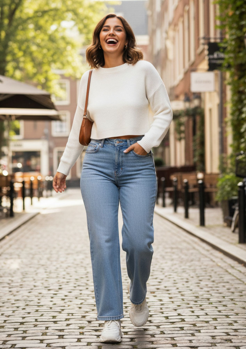 I love how versatile they are. I can wear them with sneakers or heels. The fit is super flattering, and the denim feels high-quality.