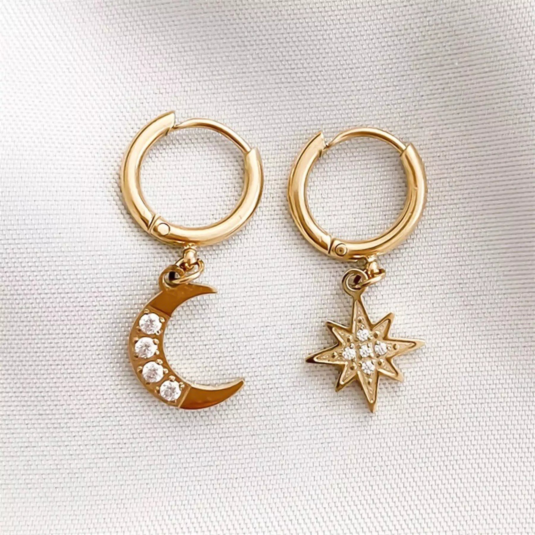 These hoops are absolutely magical! The star and moon sparkle beautifully, and the size is perfect for everyday wear.